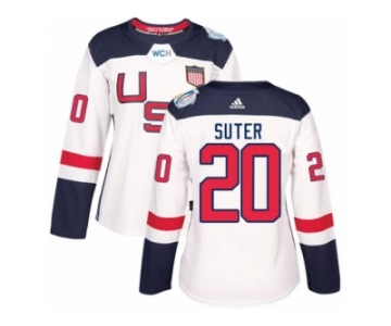 Women's Adidas Team USA #20 Ryan Suter Authentic White Home 2016 World Cup Hockey Jersey