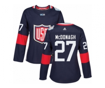Women's Adidas Team USA #27 Ryan McDonagh Authentic Navy Blue Away 2016 World Cup Hockey Jersey