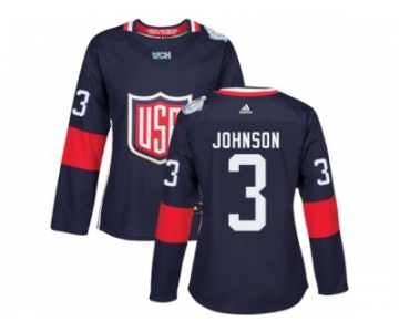 Women's Adidas Team USA #3 Jack Johnson Premier Navy Blue Away 2016 World Cup Hockey Jersey