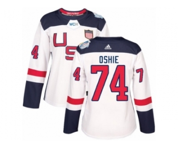 Women's Adidas Team USA #74 T. J. Oshie Premier White Home 2016 World Cup Hockey Jersey