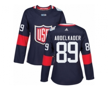Women's Adidas Team USA #89 Justin Abdelkader Premier Navy Blue Away 2016 World Cup Hockey Jersey