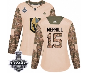 Women's Adidas Vegas Golden Knights #15 Jon Merrill Authentic Camo Veterans Day Practice 2018 Stanley Cup Final NHL Jersey