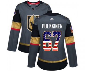 Women's Adidas Vegas Golden Knights #67 Teemu Pulkkinen Authentic Gray USA Flag Fashion NHL Jersey