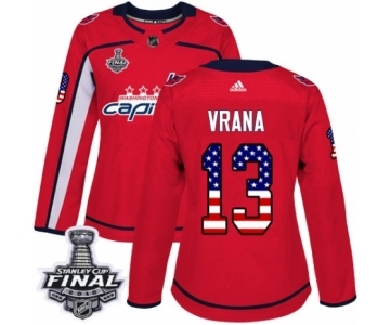 Women's Adidas Washington Capitals #13 Jakub Vrana Authentic Red USA Flag Fashion 2018 Stanley Cup Final NHL Jersey