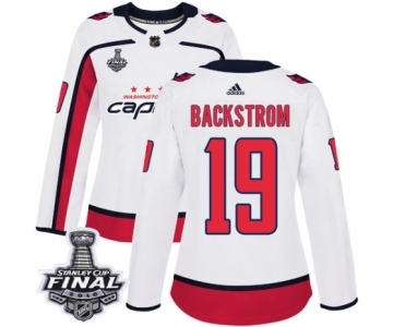 Women's Adidas Washington Capitals #19 Nicklas Backstrom Authentic White Away 2018 Stanley Cup Final NHL Jersey