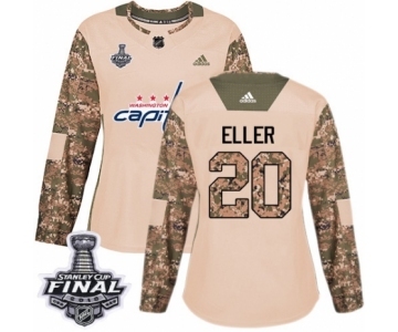 Women's Adidas Washington Capitals #20 Lars Eller Authentic Camo Veterans Day Practice 2018 Stanley Cup Final NHL Jersey