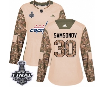 Women's Adidas Washington Capitals #30 Ilya Samsonov Authentic Camo Veterans Day Practice 2018 Stanley Cup Final NHL Jersey