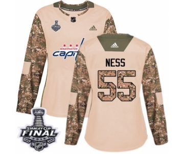 Women's Adidas Washington Capitals #55 Aaron Ness Authentic Camo Veterans Day Practice 2018 Stanley Cup Final NHL Jersey