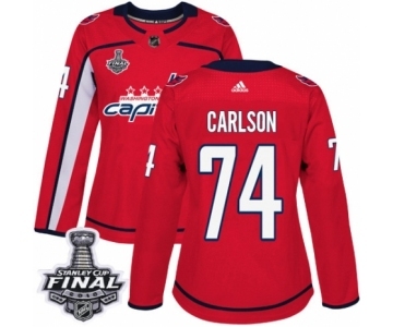 Women's Adidas Washington Capitals #74 John Carlson Authentic Red Home 2018 Stanley Cup Final NHL Jersey