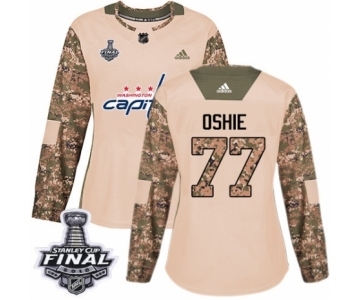 Women's Adidas Washington Capitals #77 T.J. Oshie Authentic Camo Veterans Day Practice 2018 Stanley Cup Final NHL Jersey