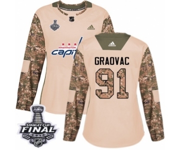 Women's Adidas Washington Capitals #91 Tyler Graovac Authentic Camo Veterans Day Practice 2018 Stanley Cup Final NHL Jersey
