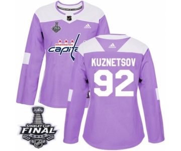 Women's Adidas Washington Capitals #92 Evgeny Kuznetsov Authentic Purple Fights Cancer Practice 2018 Stanley Cup Final NHL Jersey