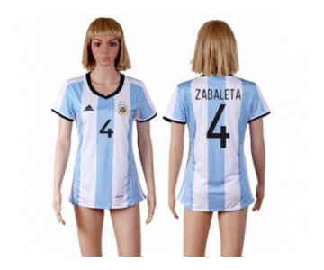 Women's Argentina #4 Zabaleta Home Soccer Country Jersey