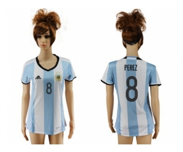 Women's Argentina #8 Perez Home Soccer Country Jersey
