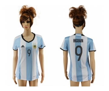 Women's Argentina #9 Higuain Home Soccer Country Jersey