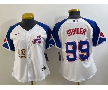 Women's Atlanta Braves #99 Spencer Strider Number White 2023 City Connect Cool Base Stitched Jersey