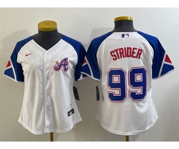 Women's Atlanta Braves #99 Spencer Strider White 2023 City Connect Cool Base Stitched Jersey