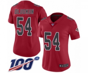 Women's Atlanta Falcons #54 Foye Oluokun Limited Red Rush Vapor Untouchable 100th Season Football Jersey