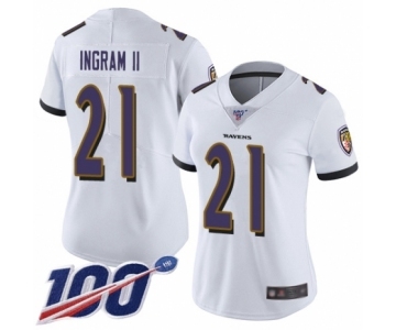 Women's Baltimore Ravens #21 Mark Ingram II White Vapor Untouchable Limited Player 100th Season Football Jersey