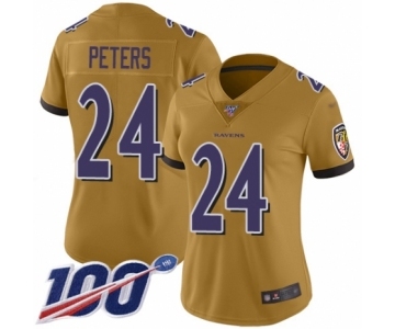 Women's Baltimore Ravens #24 Marcus Peters Limited Gold Inverted Legend 100th Season Football Jersey