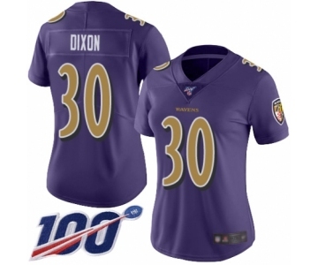 Women's Baltimore Ravens #30 Kenneth Dixon Limited Purple Rush Vapor Untouchable 100th Season Football Jersey
