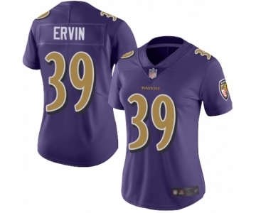 Women's Baltimore Ravens #39 Tyler Ervin Limited Purple Rush Vapor Untouchable Football Jersey