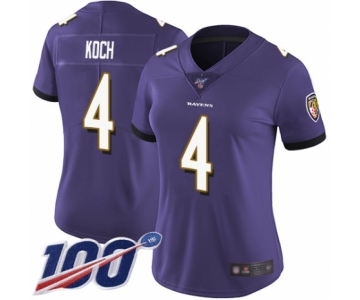 Women's Baltimore Ravens #4 Sam Koch Purple Team Color Vapor Untouchable Limited Player 100th Season Football Jersey