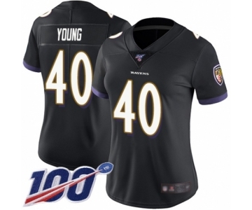 Women's Baltimore Ravens #40 Kenny Young Black Alternate Vapor Untouchable Limited Player 100th Season Football Jersey
