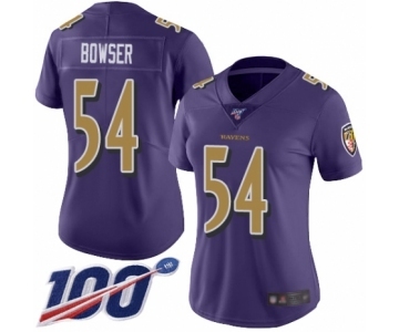 Women's Baltimore Ravens #54 Tyus Bowser Limited Purple Rush Vapor Untouchable 100th Season Football Jersey