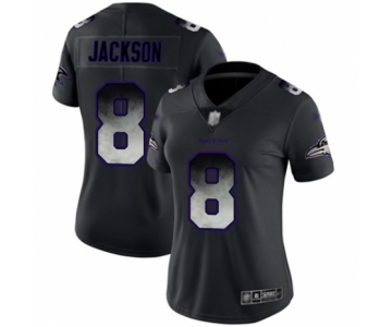 Women's Baltimore Ravens #8 Lamar Jackson Limited Black Smoke Fashion Football Jersey