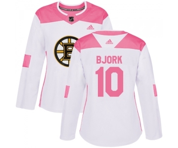 Women's Boston Bruins #10 Anders Bjork Authentic White Pink Fashion Hockey Jersey