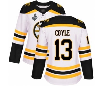 Women's Boston Bruins #13 Charlie Coyle Authentic White Away 2019 Stanley Cup Final Bound Hockey Jersey