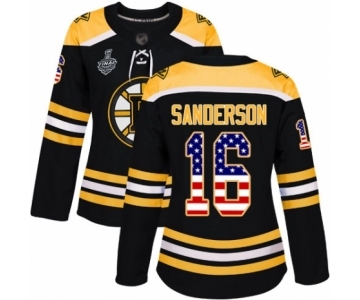 Women's Boston Bruins #16 Derek Sanderson Authentic Black USA Flag Fashion 2019 Stanley Cup Final Bound Hockey Jersey