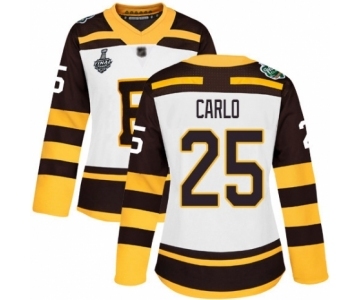 Women's Boston Bruins #25 Brandon Carlo Authentic White Winter Classic 2019 Stanley Cup Final Bound Hockey Jersey