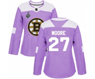 Women's Boston Bruins #27 John Moore Authentic Purple Fights Cancer Practice 2019 Stanley Cup Final Bound Hockey Jersey