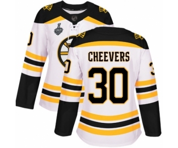 Women's Boston Bruins #30 Gerry Cheevers Authentic White Away 2019 Stanley Cup Final Bound Hockey Jersey