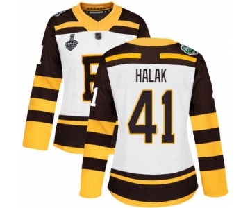 Women's Boston Bruins #41 Jaroslav Halak Authentic White Winter Classic 2019 Stanley Cup Final Bound Hockey Jersey