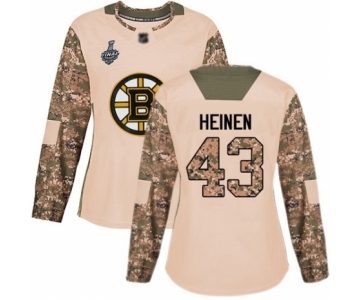 Women's Boston Bruins #43 Danton Heinen Authentic Camo Veterans Day Practice 2019 Stanley Cup Final Bound Hockey Jersey
