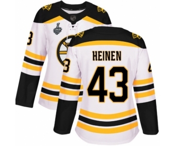 Women's Boston Bruins #43 Danton Heinen Authentic White Away 2019 Stanley Cup Final Bound Hockey Jersey