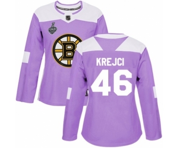 Women's Boston Bruins #46 David Krejci Authentic Purple Fights Cancer Practice 2019 Stanley Cup Final Bound Hockey Jersey