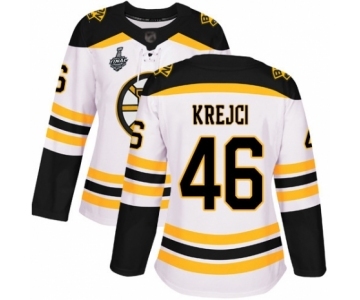 Women's Boston Bruins #46 David Krejci Authentic White Away 2019 Stanley Cup Final Bound Hockey Jersey