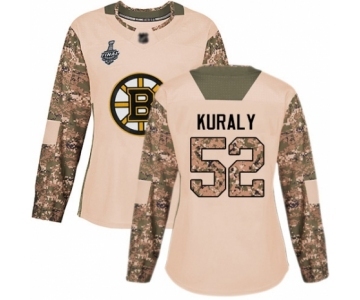 Women's Boston Bruins #52 Sean Kuraly Authentic Camo Veterans Day Practice 2019 Stanley Cup Final Bound Hockey Jersey