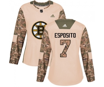 Women's Boston Bruins #7 Phil Esposito Authentic Camo Veterans Day Practice Hockey Jersey