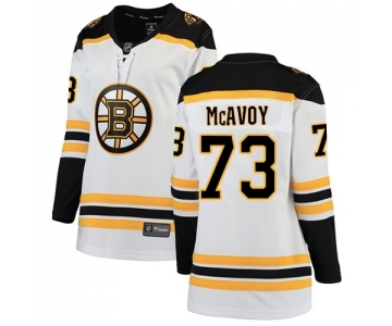 Women's Boston Bruins #73 Charlie McAvoy Authentic White Away Fanatics Branded Breakaway Hockey Jersey