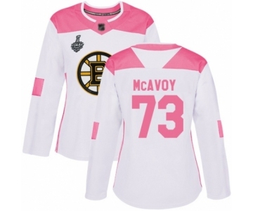 Women's Boston Bruins #73 Charlie McAvoy Authentic White Pink Fashion 2019 Stanley Cup Final Bound Hockey Jersey