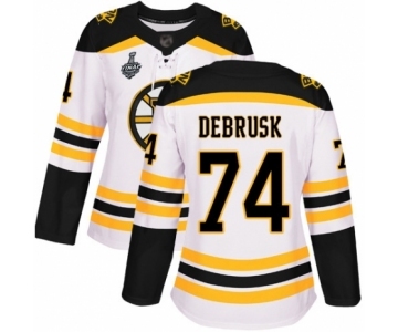 Women's Boston Bruins #74 Jake DeBrusk Authentic White Away 2019 Stanley Cup Final Bound Hockey Jersey