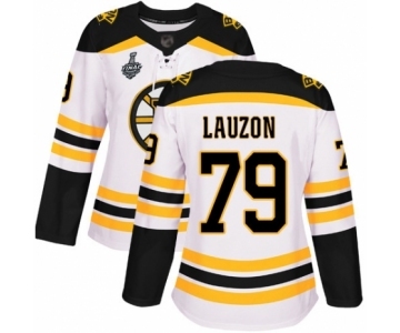 Women's Boston Bruins #79 Jeremy Lauzon Authentic White Away 2019 Stanley Cup Final Bound Hockey Jersey