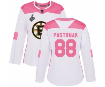 Women's Boston Bruins #88 David Pastrnak Authentic White Pink Fashion 2019 Stanley Cup Final Bound Hockey Jersey