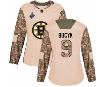 Women's Boston Bruins #9 Johnny Bucyk Authentic Camo Veterans Day Practice 2019 Stanley Cup Final Bound Hockey Jersey