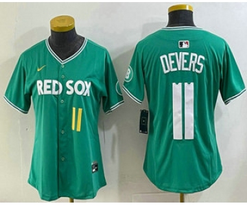 Women's Boston Red Sox #11 Rafael Devers Green 2025 City Connect Player Name Limited Jersey